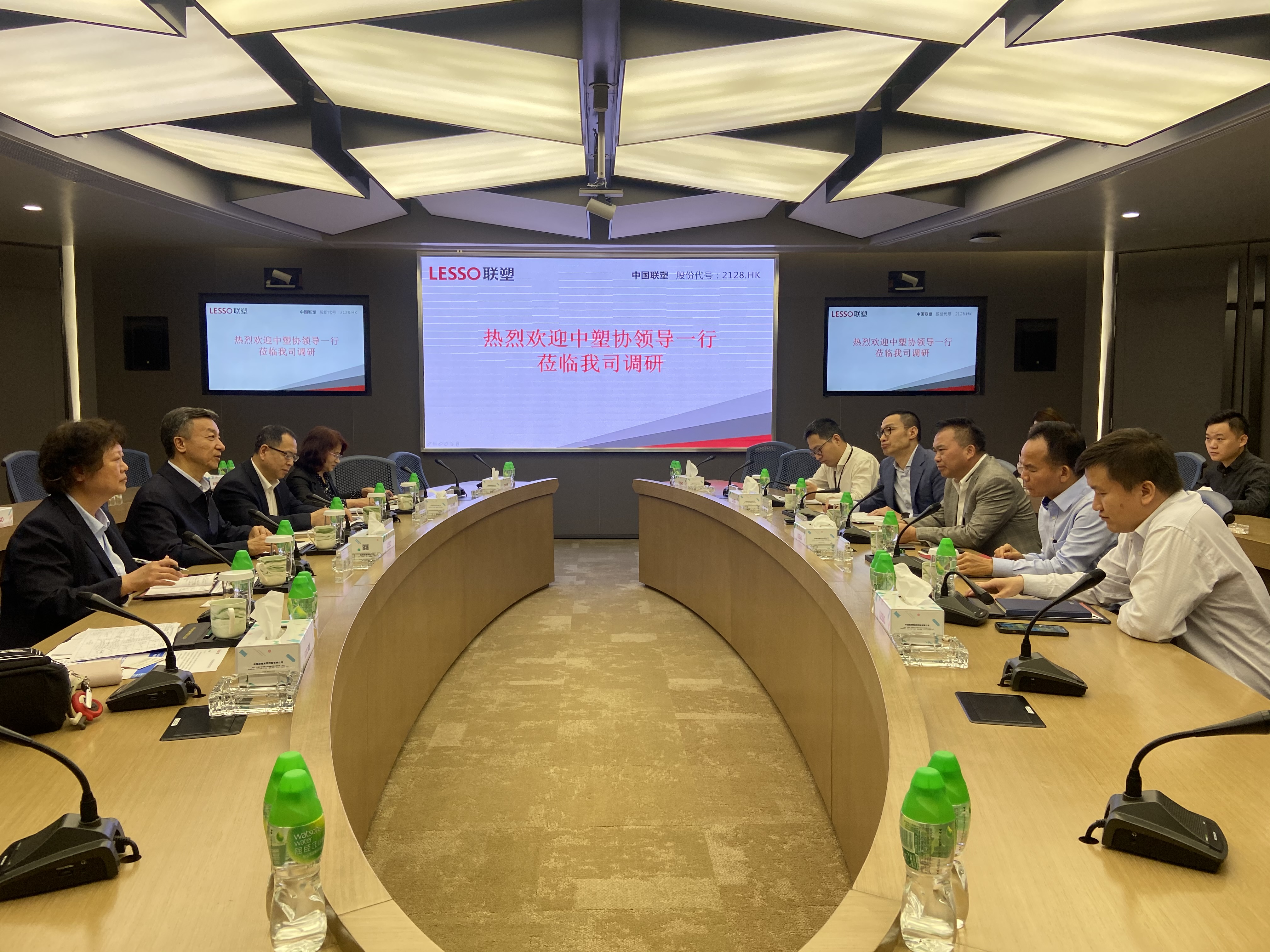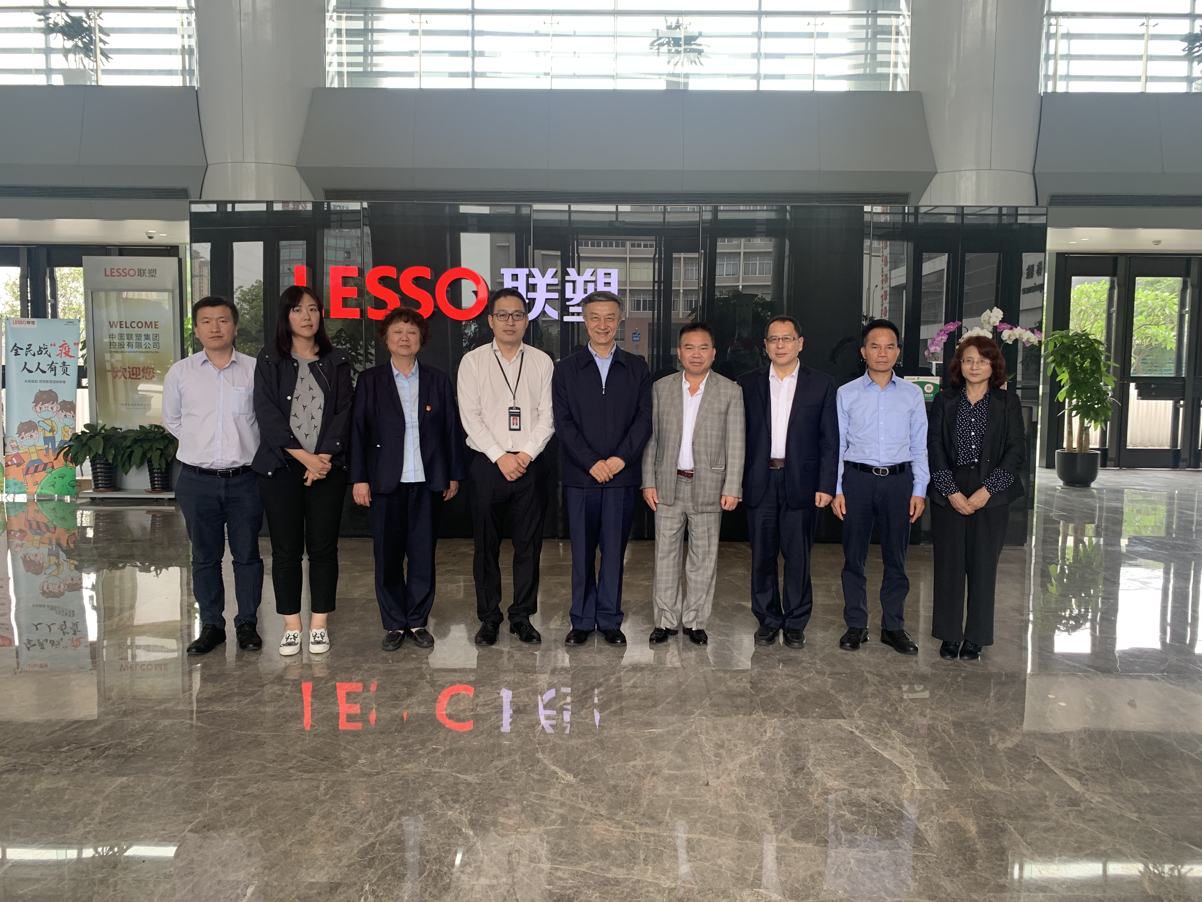 2021年4月19日,中國塑協朱文瑋理事長率王占杰副理事長兼秘書長一行五人,來到中國聯塑集團控股有限公司調研,受到了聯塑集團主席黃聯禧、執行董事兼首席執行官左滿倫、執行董事兼副總裁賴志強、副總裁兼總工程師宋科明、研究院院長李統一等公司主要負責人的熱情接待。
