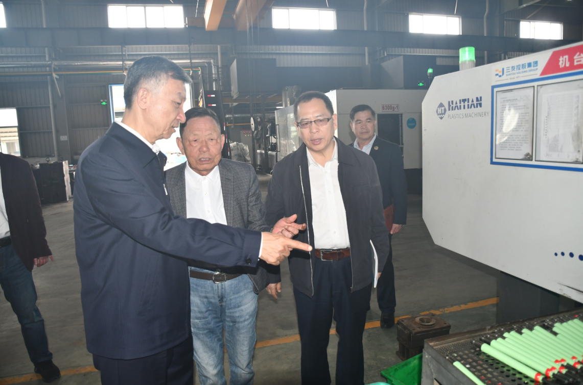 在公司董事長張小赧、副董事長蔣傳良、黨委副書記副總經理蔣克亮、副總經理戴云卿、辦公室主任徐金山及臺州市塑料行業協會會長江桂蘭、副秘書長陳嘉增等陪同下,參觀了公司產區布局、生產車間和展示廳,了解公司發展歷程、企業文化、產品生產銷售情況及未來發展規劃等。