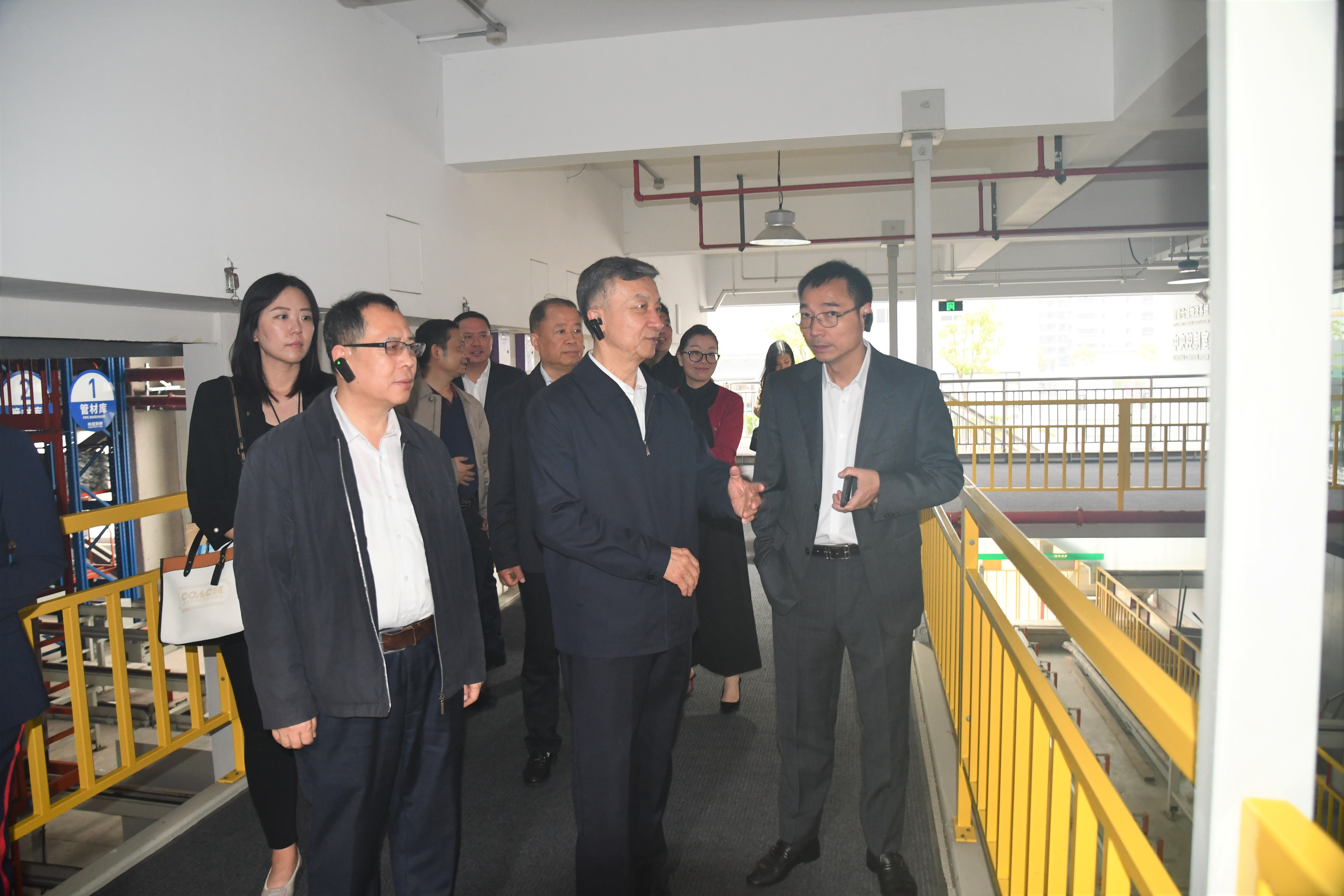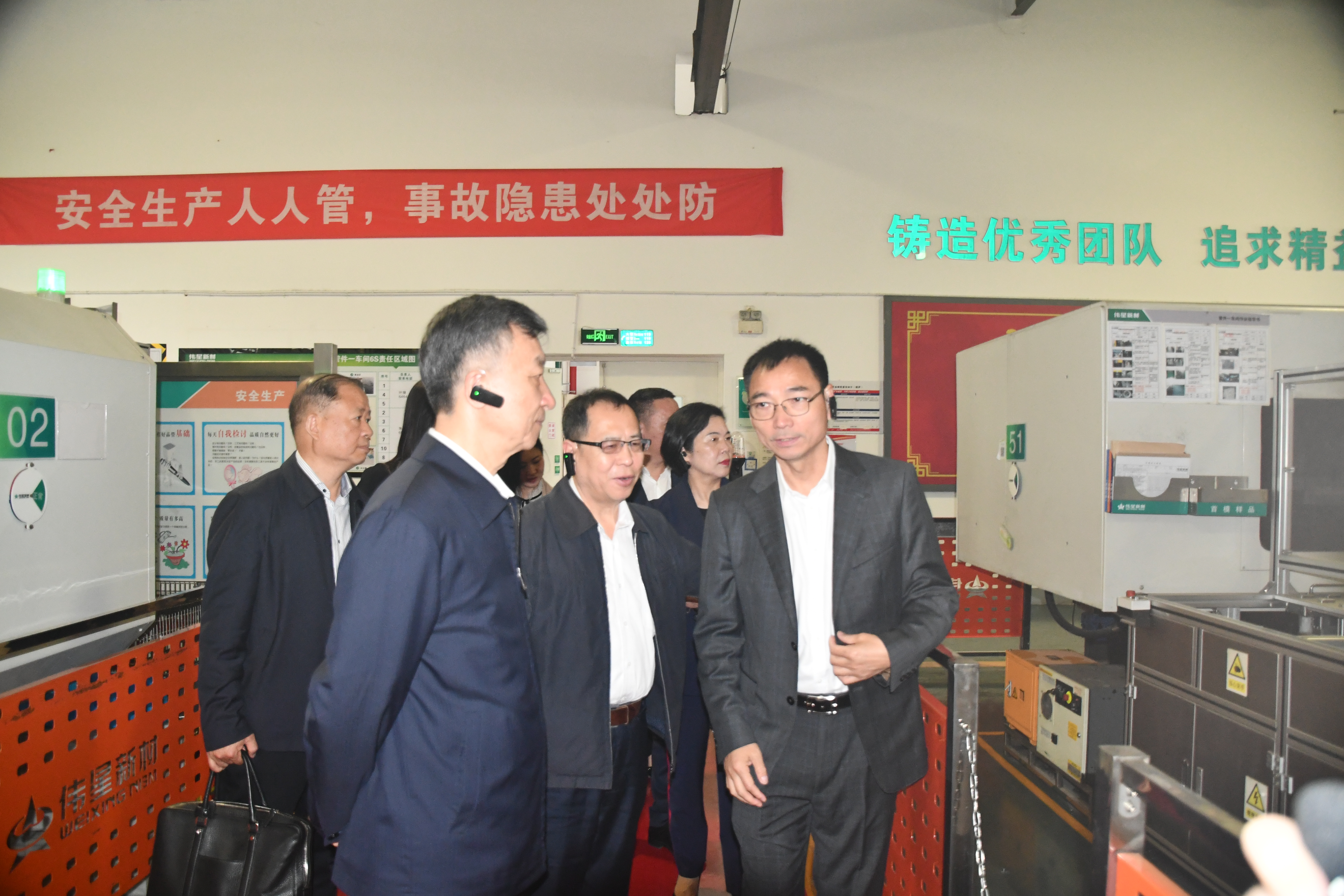 在公司董事長兼總經理金紅陽、技術中心總經理馮金茂、應用技術部總經理李大治及臺州市塑料行業協會會長/富嶺塑膠有限公司董事長江桂蘭、臺州市塑料行業協會副會長/綠地遮陽有限公司董事長章俊軍、臺州市塑料行業協會副秘書長陳嘉增、吳丹萍等陪同下,參觀了公司產區、注塑生產車間和智能倉儲物流系統等。