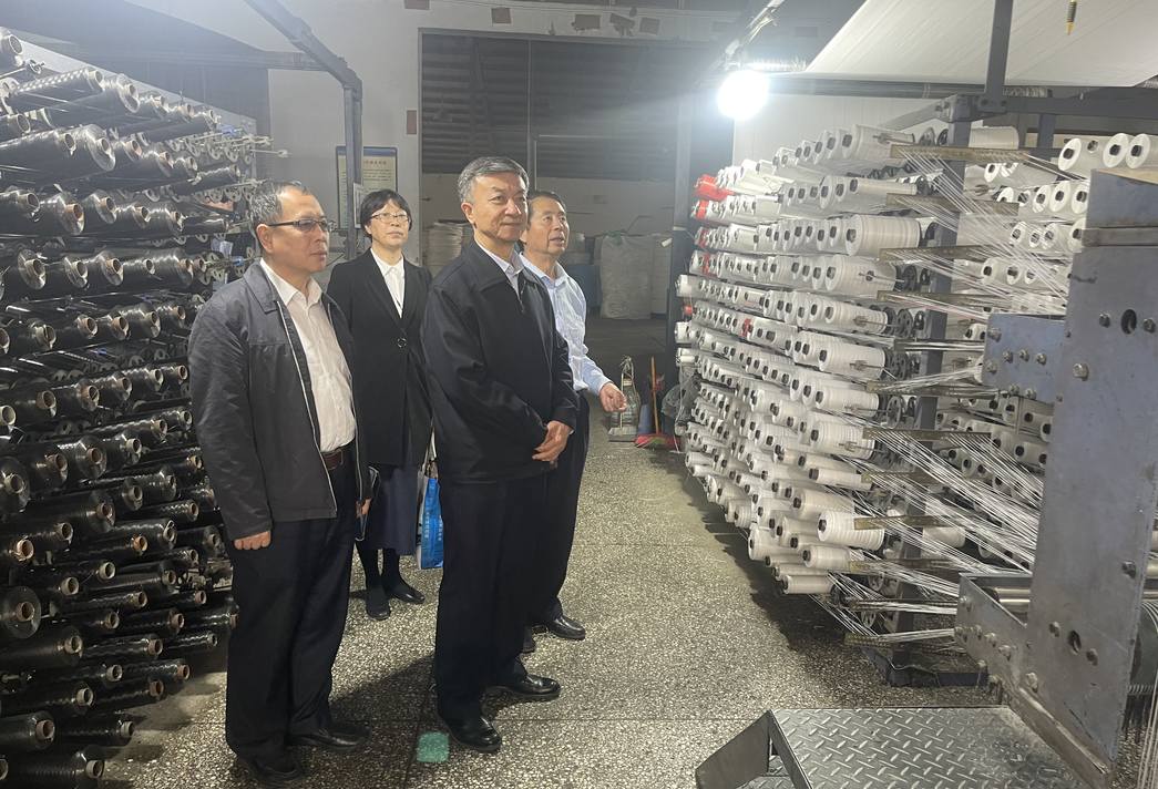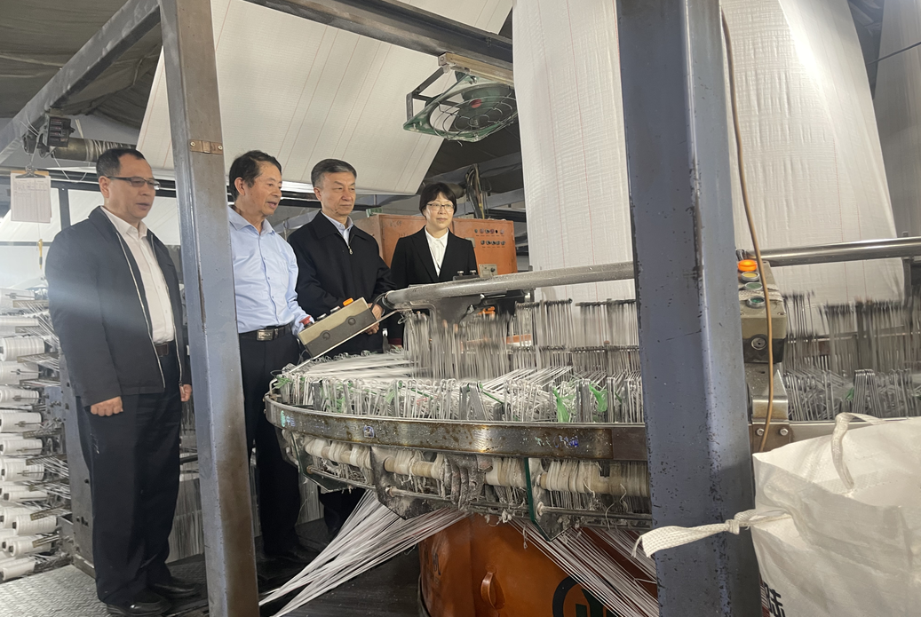 調研組考察參觀生產車間,并進行了座談交流。江蘇中乾塑業有限公司廠區占地26畝,廠房1萬平方,另在連云港、常州還有2個廠區。主要生產集裝袋和其它包裝材料,共有拉絲機3臺、織布機20臺、織帶機15臺、印刷機2臺、裁切機7臺、復膜機2臺、打包機5臺、自動化縫紉機180臺。現有職工260人,年產集裝袋200多萬條,產值1.8億元。
