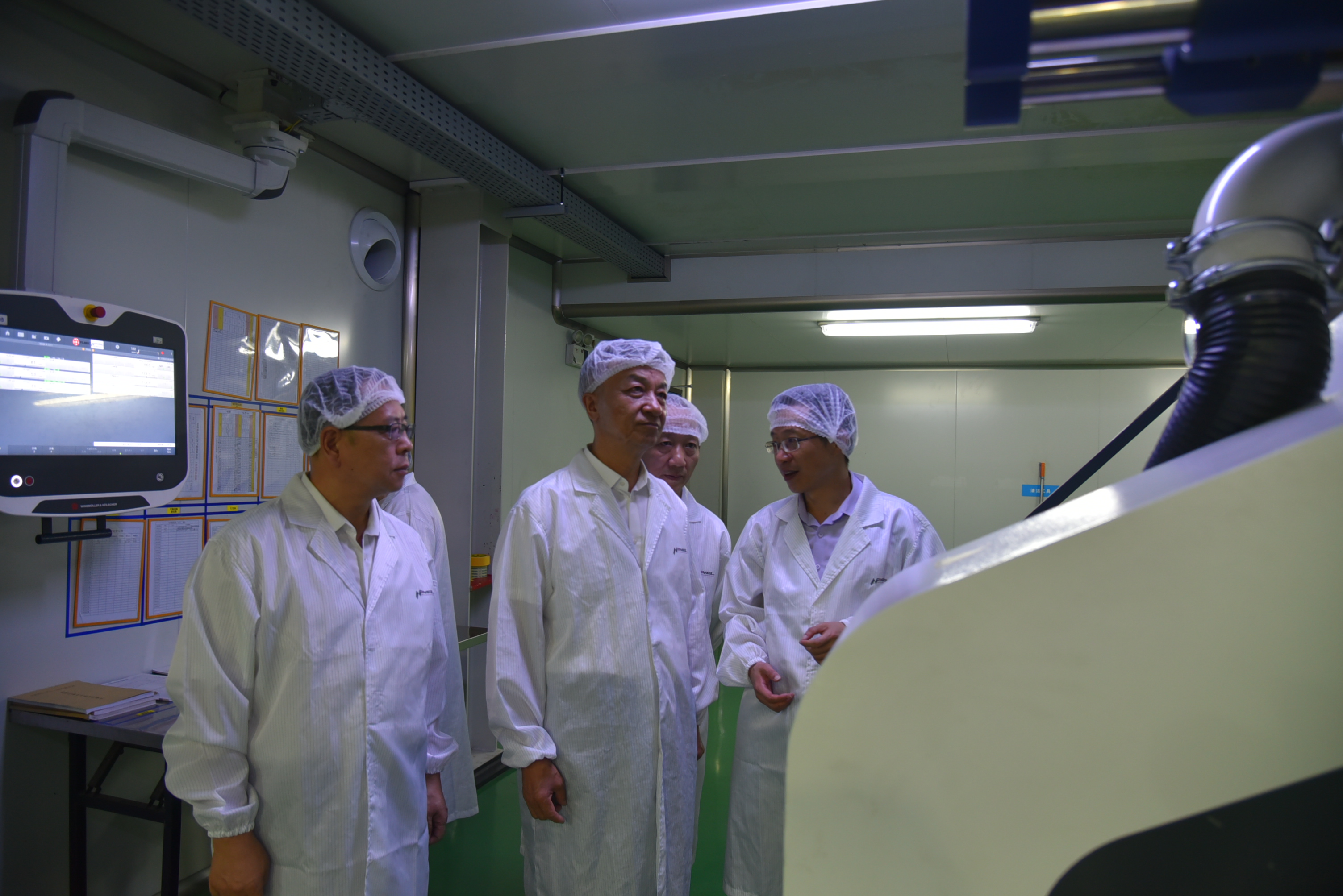 安徽省塑料協會會長韋明、黃山永新股份有限公司總經理鮑祖本、副總經理潘健等陪同參觀考察了公司生產車間、監控中心、檢測中心、實驗室、新建廠房,了解公司生產經營基本情況。
