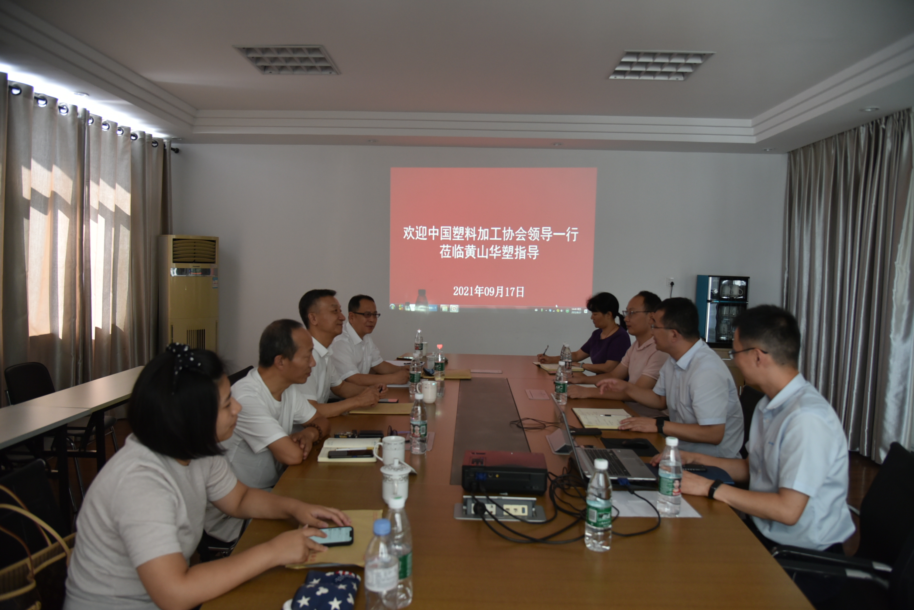 2021年9月17日下午,中國塑料加工工業協會理事長朱文瑋率副理事長兼秘書長王占杰及信息部主任姜宛君、經濟合作部副主任宋悅等一行四人到黃山華塑新材料科技有限公司調研。