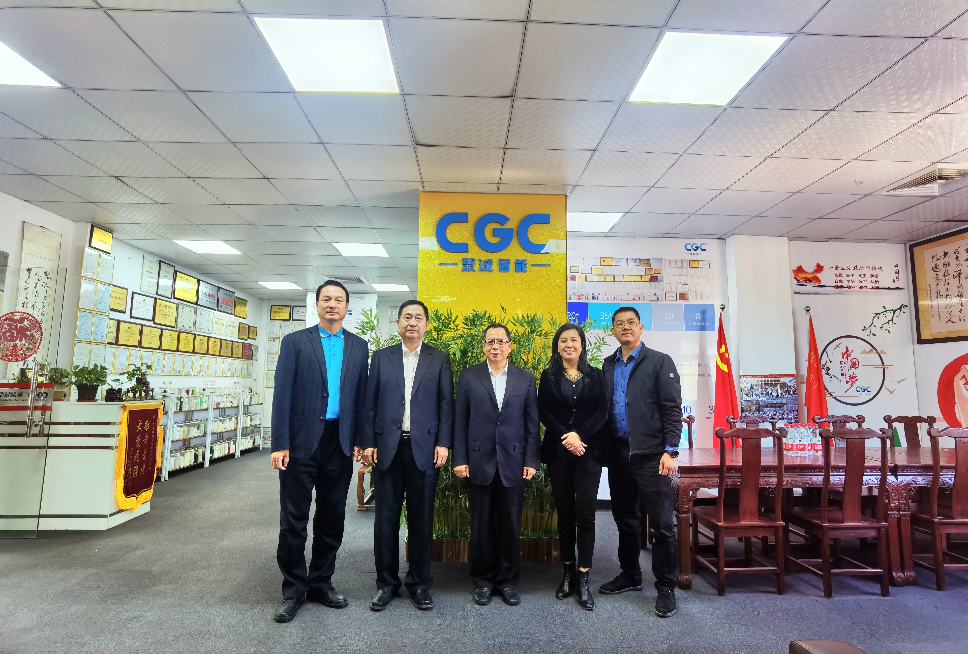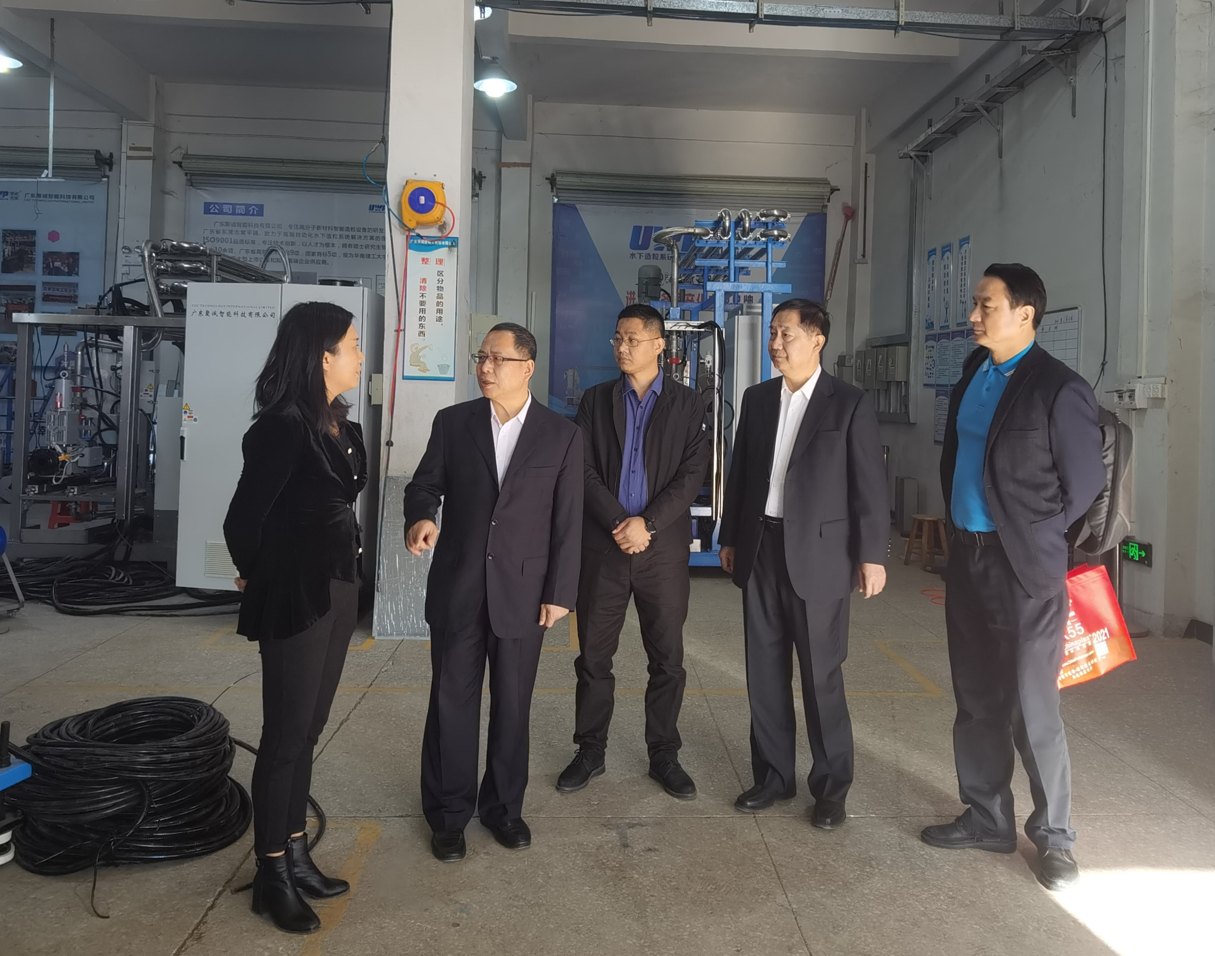 2021年12月6日,中國塑料加工工業協會理事長王占杰、副理事長王磊光、中國塑協塑料家居用品專委會常務副秘書長黃少群一行到廣東聚誠智能科技有限公司考察調研。公司董事長劉紹興、總經理李花熱情地接待了調研組一行。