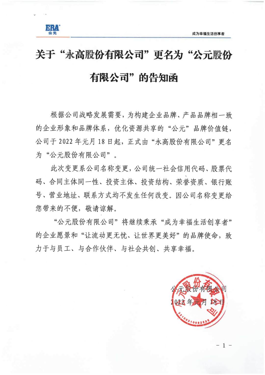 恭賀永高股份有限公司更名為公元股份有限公司