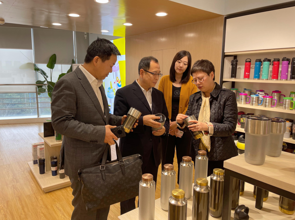 王占杰理事長一行參觀寧波酷爾塑料科技有限公司樣品展廳
