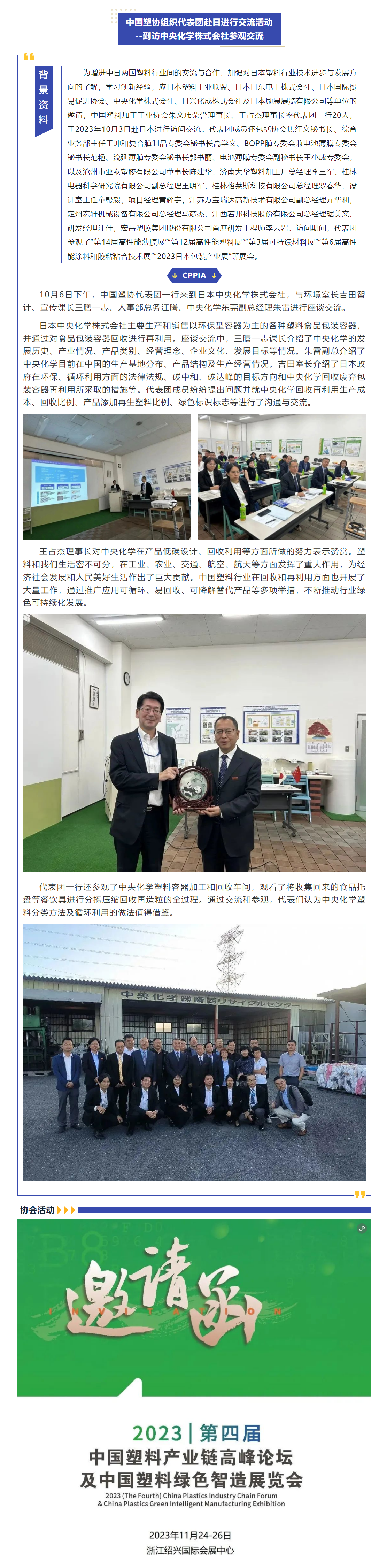 中國塑協代表團與中央化學座談交流