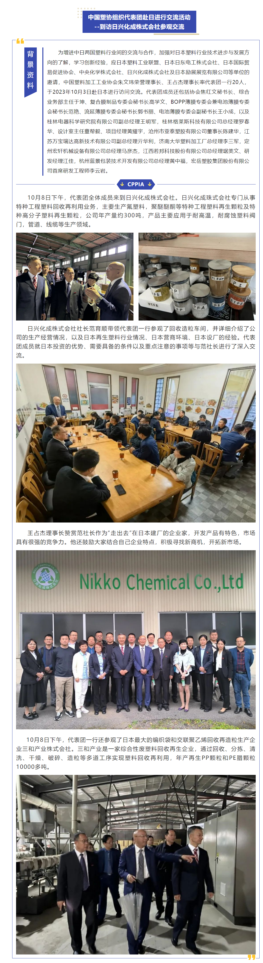 中國塑協代表團到訪日興化成株式會社參觀交流