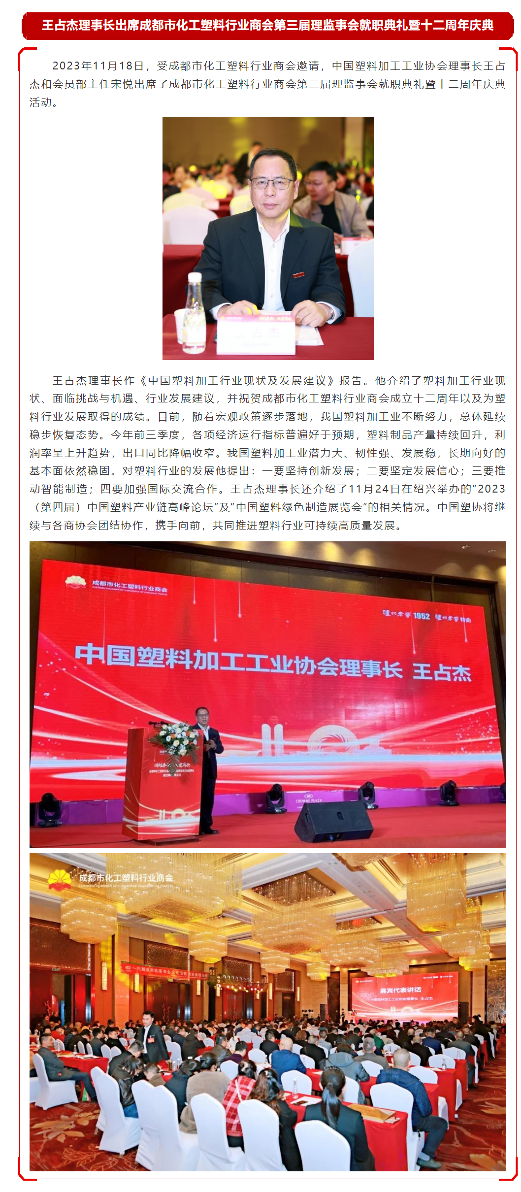 王占杰理事長出席成都市化工塑料行業商會第三屆理監事會就職典禮暨十二周年慶典