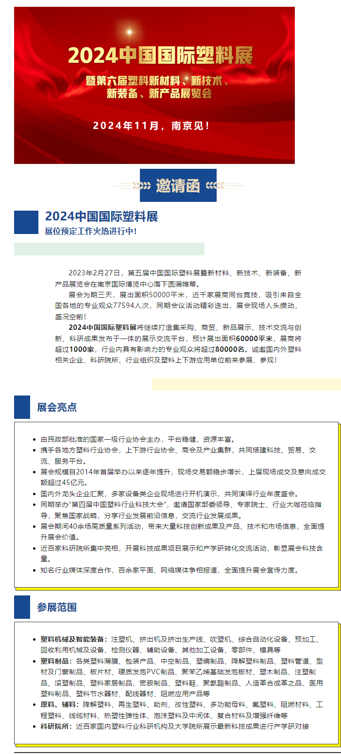 開搶啦!2024中國國際塑料展 展位預定工作火熱進行中!