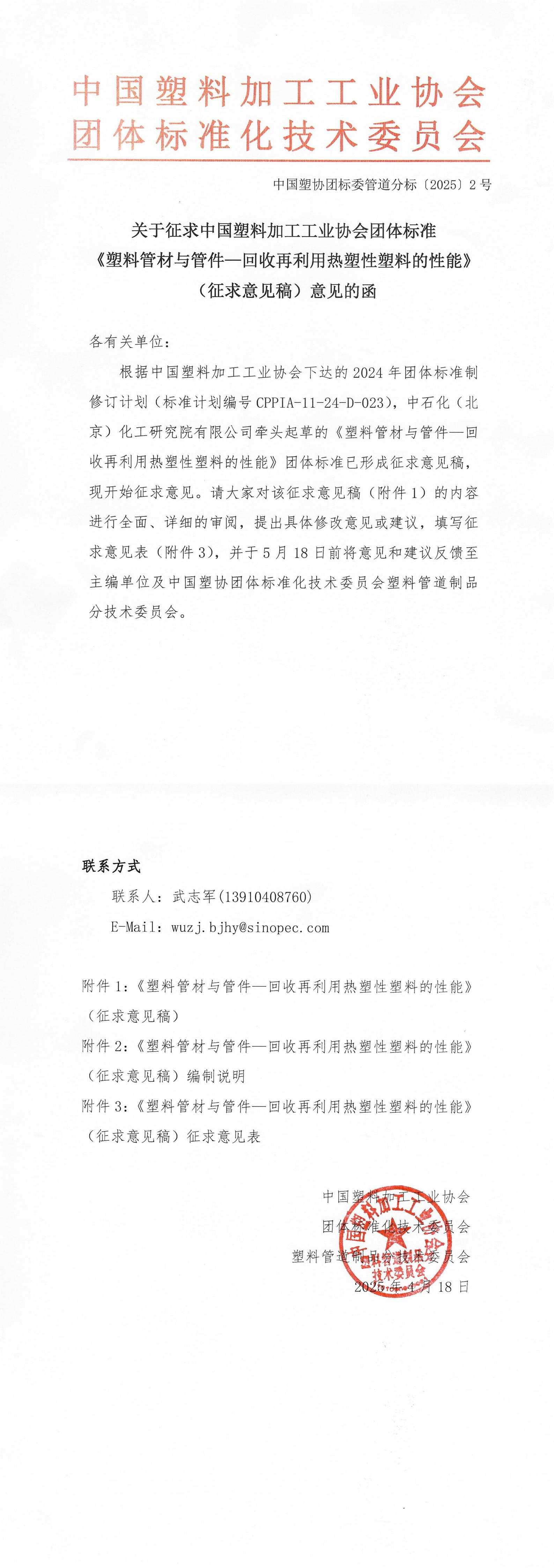附件1:《塑料管材與管件—回收再利用熱塑性塑料的性能》(征求意見稿).pdf