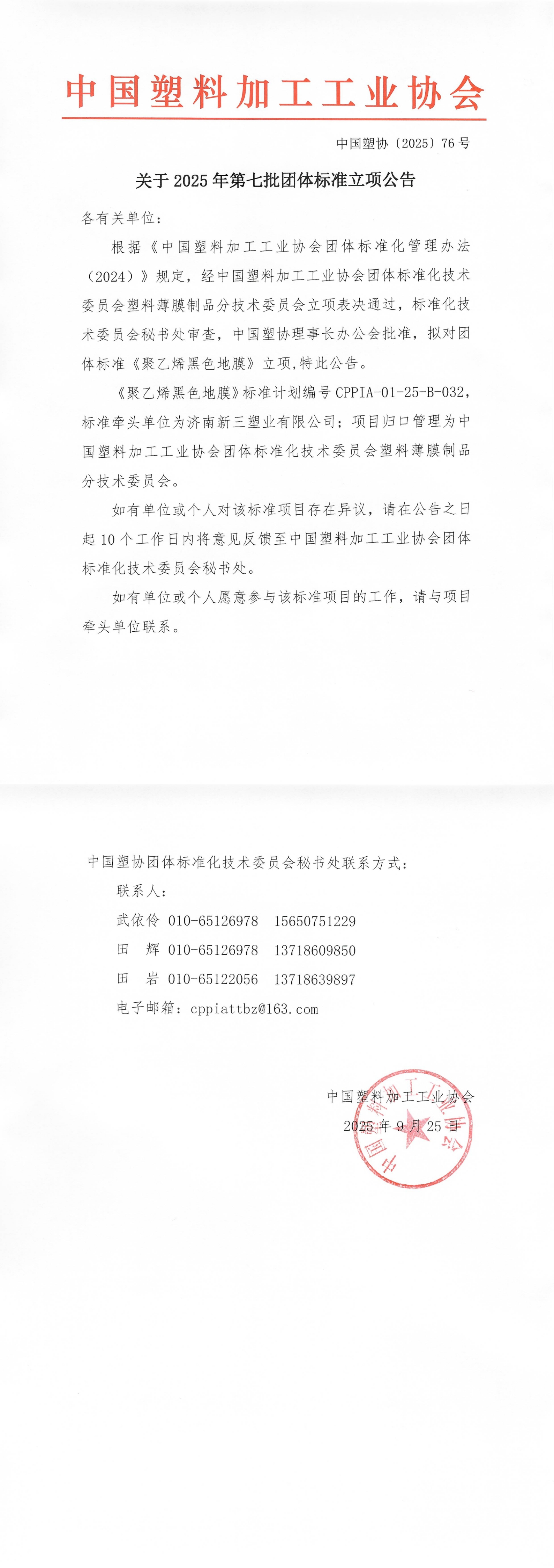 關于2025年第七批團體標準立項公告