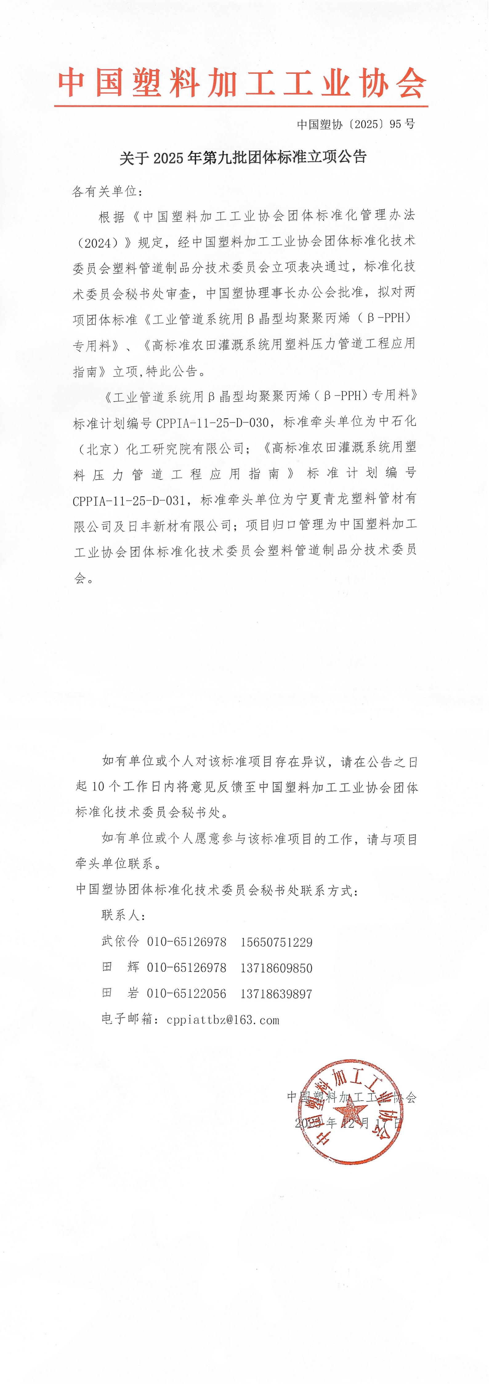 關于2025年第九批團體標準立項公告